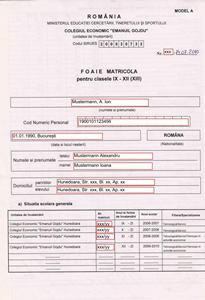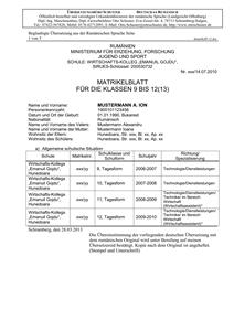 Matrikelblatt Klassen 9 bis 12 (13) (Foaie matricolă, clasele 9-12 (13)) |