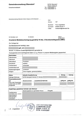 Meldebescheinigung (nur selten nötig), Aufenthaltsbescheinigung (Adeverinţă de domiciliu, Certificat de şedere) |